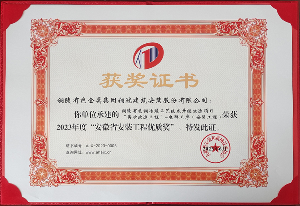 • 二O二三年度銅陵市建設工程“銅都杯”獎